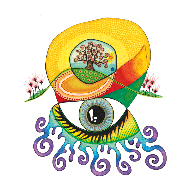 Alle Bildmotive sind auf der Vorderseite in einem farbigen Kreis, und größer auf der Rückseite der T-Shirts.